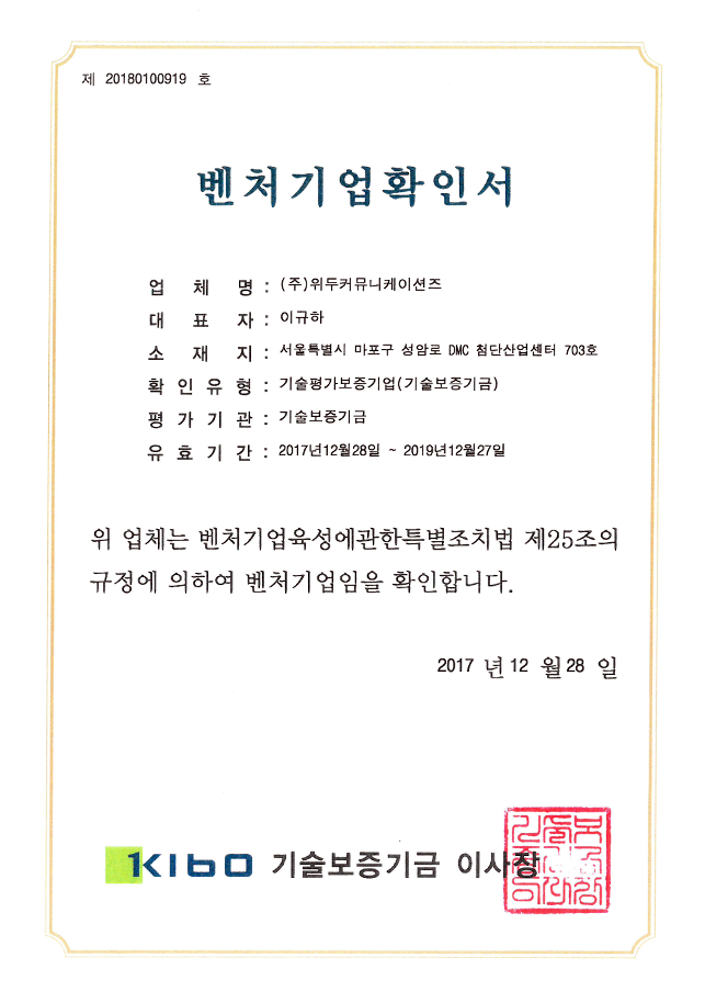 ㆍ 기술 신용 보증 – 벤처기업 인증