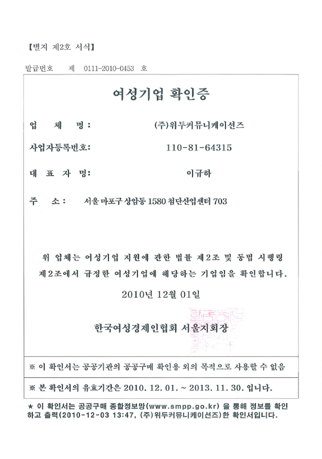 ㆍ 법인설립(박정호 장은숙 공동대표)