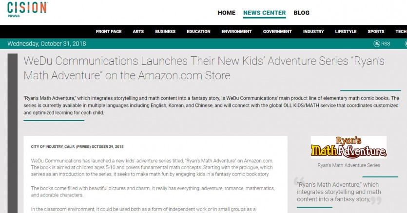 PRWEB has published our 2nd Ryan's Math Adventure press release.