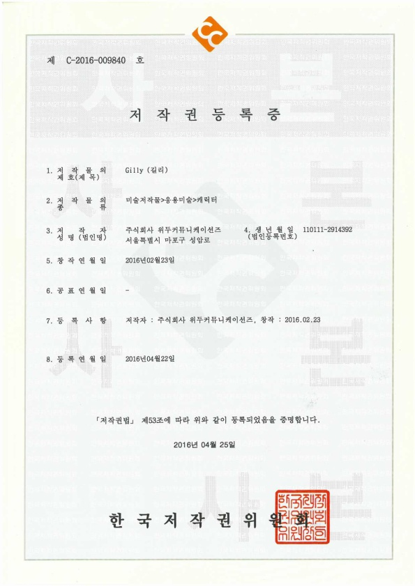[한국/저작권] 길리 페이지 정보 작성자 WeDu 댓글 0건 조회 6,319회 작성일 19-05-30 19:07 본문 2016-04-22 저작권 C-2016-009840 길리 / 미술저작물>응용미술>캐릭터 List Previous[한국/저작권] 나무트 19.05.30 Next[한국/저작권] 리안의 수학 모험 19.05.30